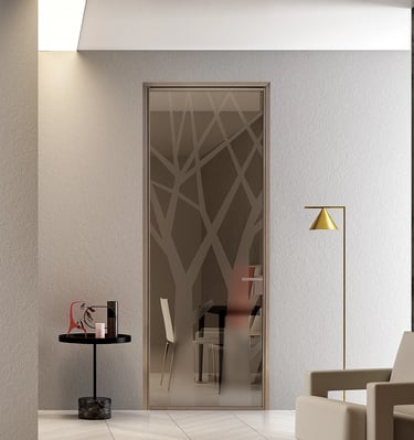 Questo permette di progettare porte in vetro che funzionano benissimo anche in bagni, cabine armadio o ambienti di servizio, dove la privacy conta.