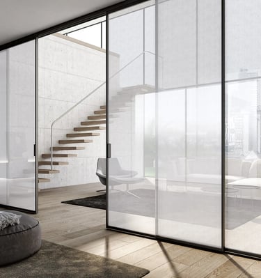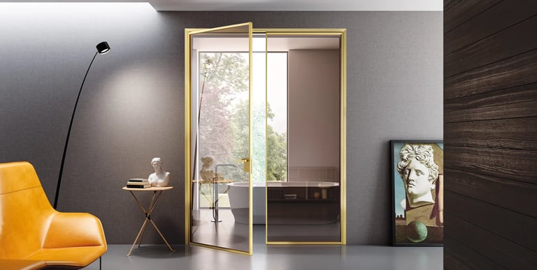 Porte in vetro con profili: estetica minimale, massima solidità